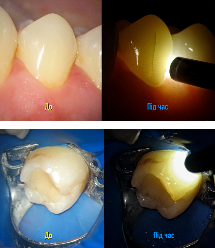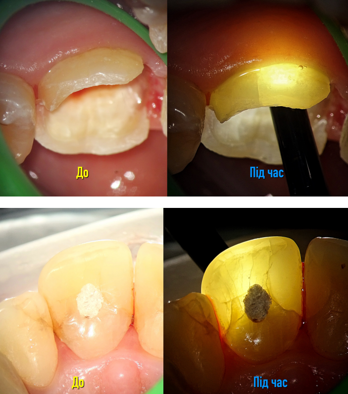 5. Для виявлення залишків композиту при демонтажі фотополімерної реставрації