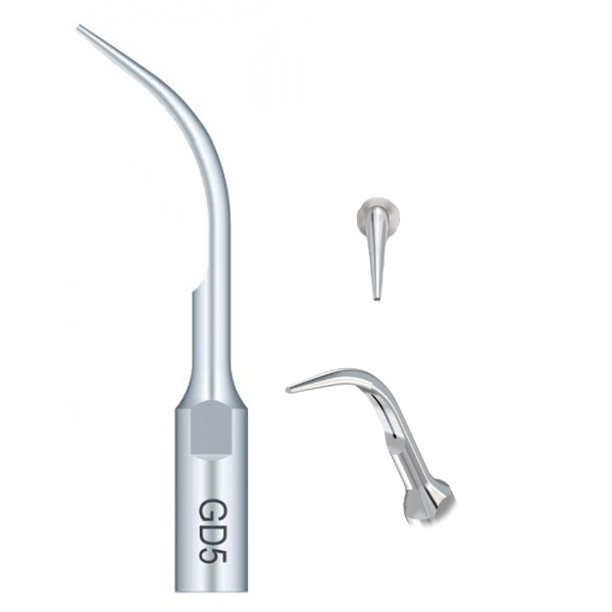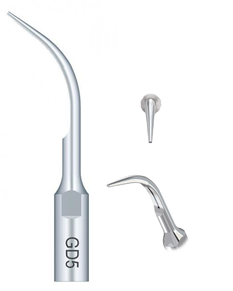 The nozzle has a curved working part, which perfectly cleans dental deposits and stone plaque from the neck of the tooth and the supragingival area.