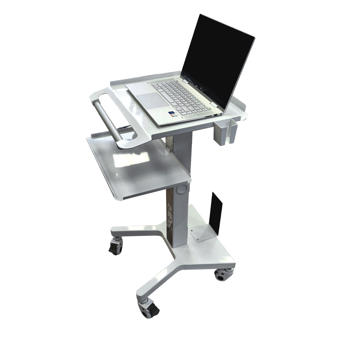 The table is equipped with wheels for convenient movement and fixation in the desired position. Its compact size allows you to save space while providing all the necessary functions for comfortable work with a computer and scanner.