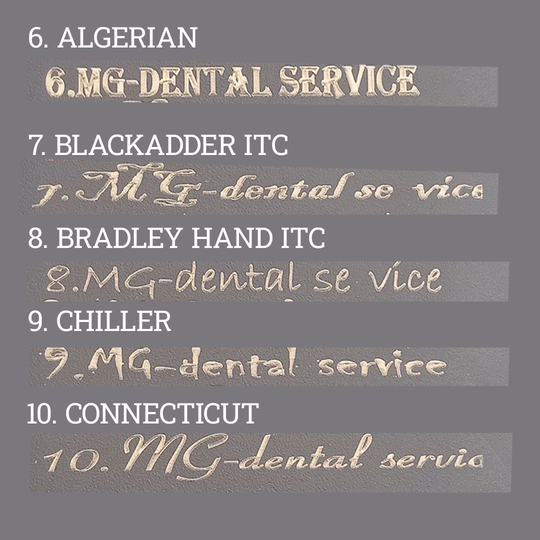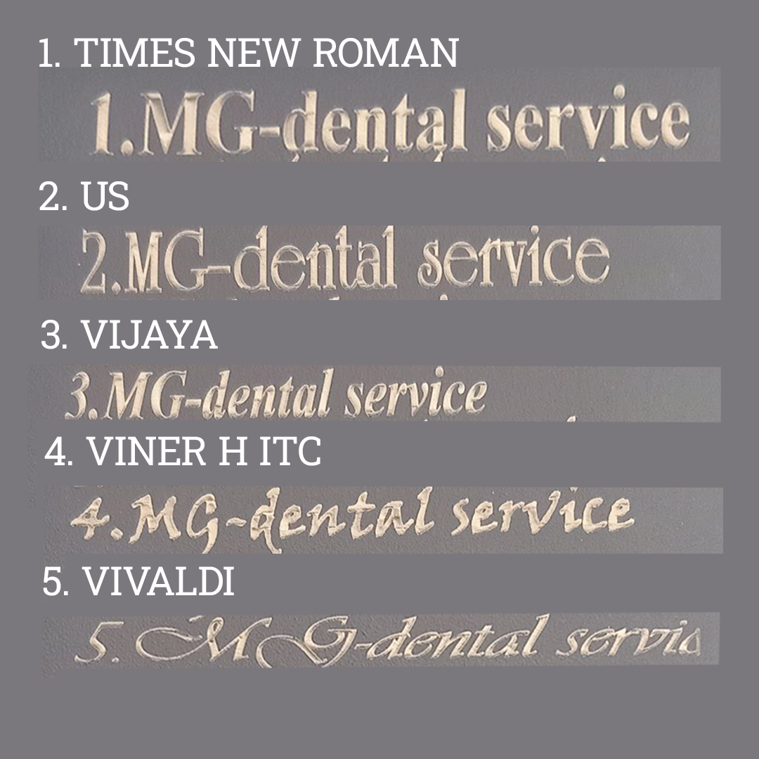 Гравіювання здійснюється за допомогою – Raycus 30Q. Наносимо логотипи, назви стоматології, ПІБ та багато іншого. Враховуємо всі побажання клієнта: розташування, шрифт, розмір. Нанесене зображення відрізняється високою стійкістю до стирання, а по довговічності воно таке ж, як і сам гравіруємий матеріал.