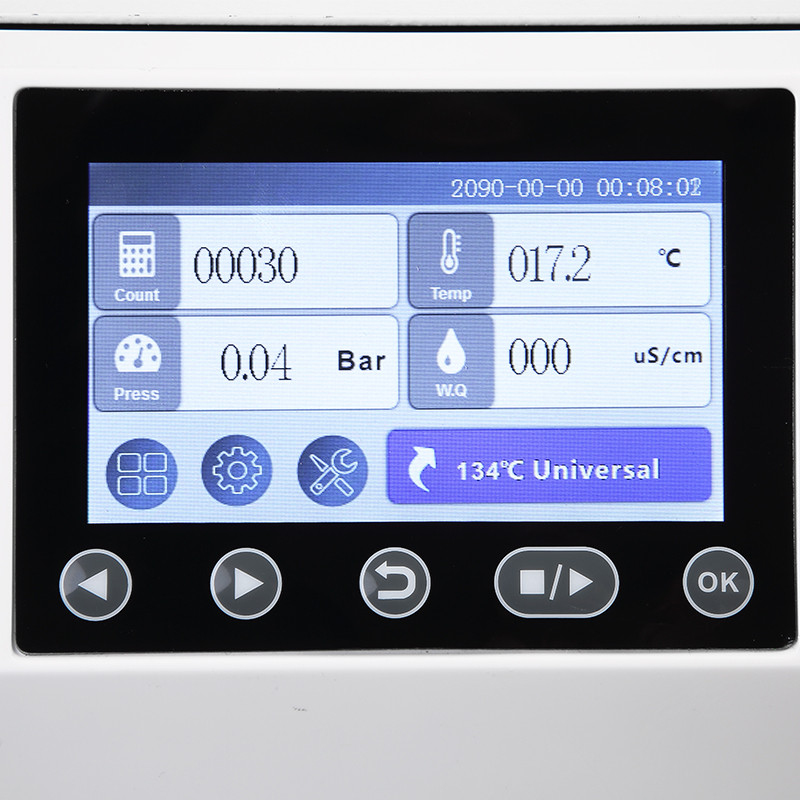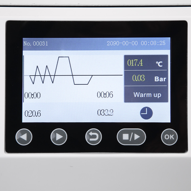 Автоклав Mona 5L Pro - невеликий паровий стерилізатор високого тиску, спеціально розроблен для використання в клініках, лікарнях, лабораторіях та інших закладах, де потрібна часта та швидка стерилізація. Завдяки мікропроцесорному інтелектуальному управлінню та інтерфейсу "людина-машина", пристрій є простим в експлуатації, безпечним і надійним. Параметри та стан роботи відображаються динамічно на сенсорному екрані. Стерилізатор оснащений автоматичною діагностикою несправностей, захистом від перегріву та надлишкового тиску, що гарантує ефективну стерилізацію та дезінфекцію.