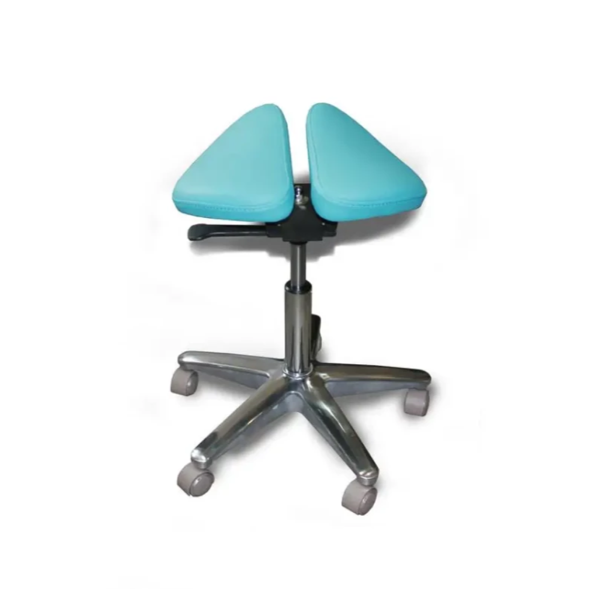 Сидіння стільця складається з 2 половинок. Завдяки чому навантаження рівномірно розподіляється на кістки тазу, знімаючи навантаження з ніг.