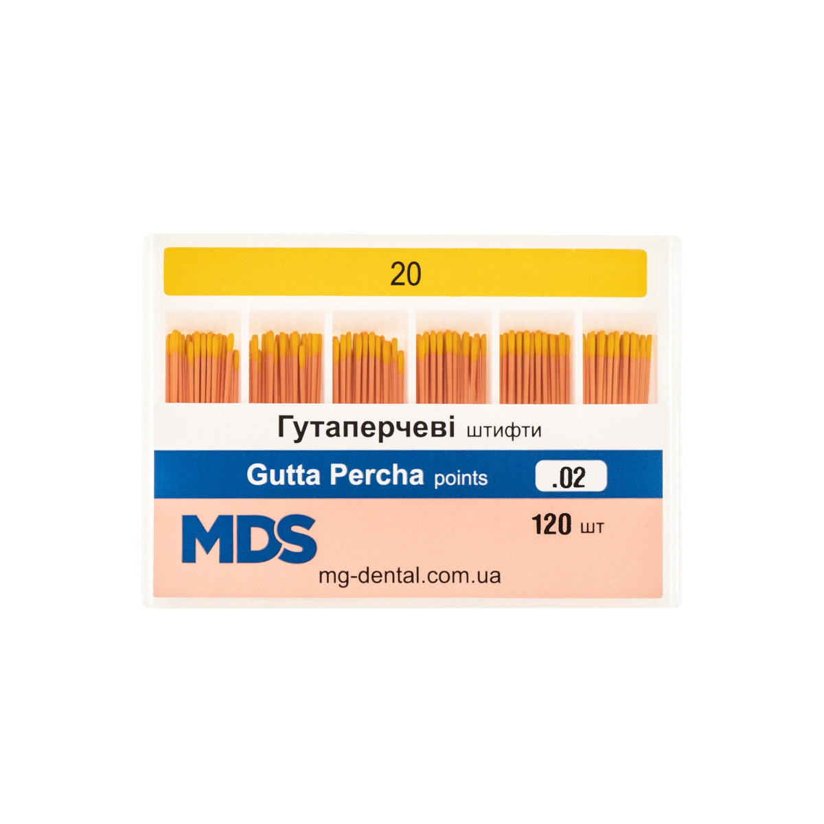 Штифти гутаперчеві, конус 02, розмір 20, MDS