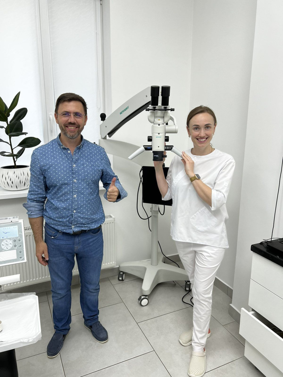 Через певний час використання, можу сміливо писати, що мікроскоп гарний! Дуже ергономічний, гарно підлаштовується під потреби кожного лікаря. Багато світла буде корисне при роботі з кореневими каналами!
