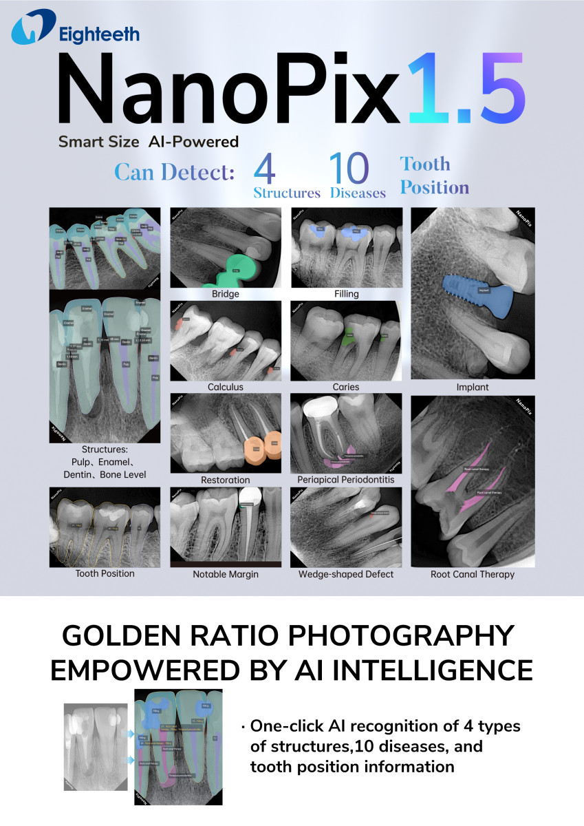 Захоплення високоякісних зображень при низькій дозі знижує потребу у тривалому досвіді рентгенографії, роблячи процедуру безпечнішою. - Теоретична роздільна здатність — 251 піксель/мм: