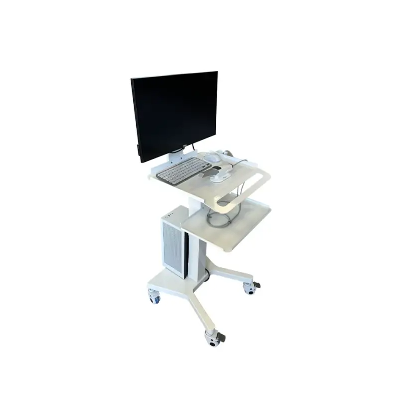 Стіл оснащений коліщатками для зручного переміщення та фіксації в потрібному положенні. Його компактні розміри дозволяють економити простір, забезпечуючи при цьому всі необхідні функції для комфортної роботи з комп'ютером або сканером.